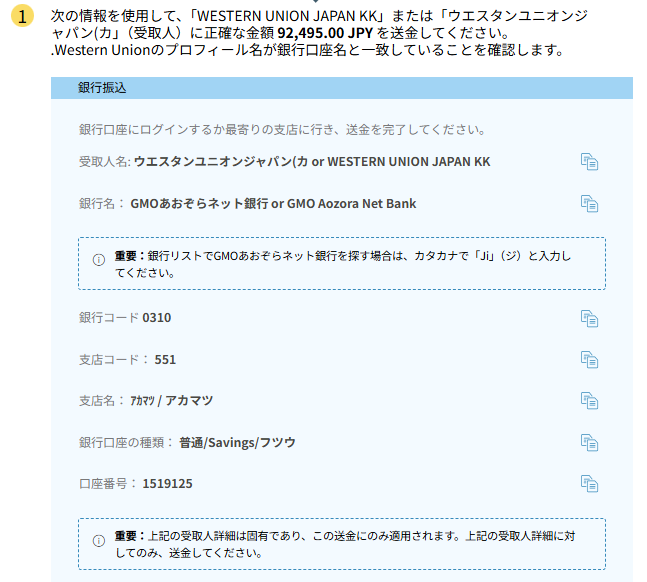 国際送金の手順(Western Union)